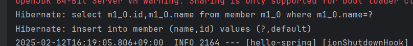➡️ 테스트 실행해보면(join 메서드 실행) Hibernate 구현체가 쿼리를 생성한 것 확인 가능