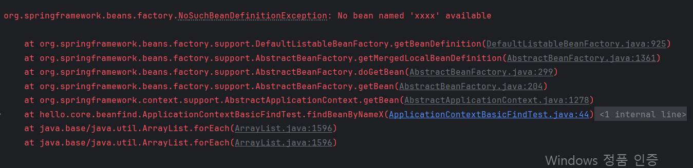 assertThrows(NoSuchBeanDefinitionException.class,