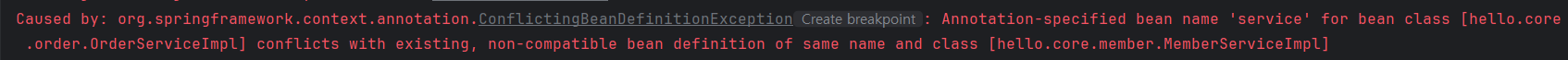 🔸자동으로 등록된 빈의 이름이 같은 경우 스프링이 오류를 발생 (ConflictingBeanDefinitionException)